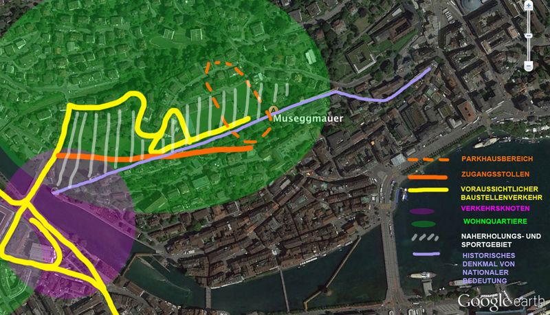 Ein weiteres Parkhaus in der Stadt wird nicht gebraucht und wäre unter dem Musegghügel am falschen Platz. Es widerspricht der Mobilitätsstrategie der Stadt, wäre eine Katastrophe für die Verkehrssituation in der Stadt und: Solch aufwendige Bauarbeiten sind in Wohnquartieren über solch lange Zeitdauern nicht vertretbar.