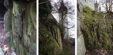 Einerseits ist die Unterhöhlung direkt eine Gefahr, da der Sandstein in steil aufstehender Schichtung liegt, und voraussichtlich durchzogen von Mergel und Kohlebänder, Abrutschungen oder Senkungen nicht gänzlich ausgeschlossen werden können.