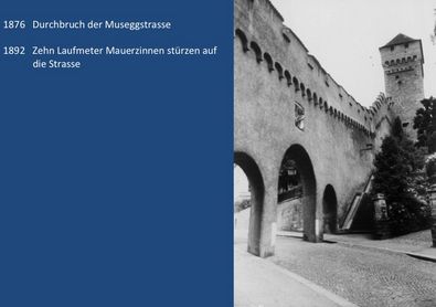 Wäre nicht die private Initiative ergriffen worden, hätte in kurzer Zeit mit grossen Schäden gerechnet werden müssen. Nun stellt die geplante Unterhöhlung des Musegghügels eine erneute mögliche Gefährdung dar.